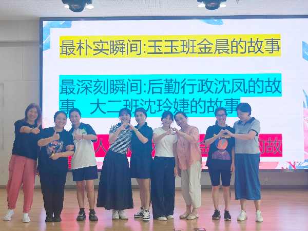 “寻找最打动你的瞬间”环节。教师们以班级为单位,分享了搭班老师的感人故事,还有在后勤岗位上不辞辛劳的老师们,一个个朴实无华却又闪耀着教育光芒的瞬间,让在场的每一位教师深受触动。
