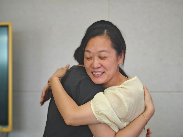 游戏过后迎来了温馨感人的时刻,教师们相互拥抱、击掌,向搭班老师、组室成员、师傅和领导送上暖心话语,真挚的祝福和温情的互动,让整个会场充满了爱的暖流。