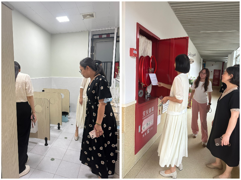 在幼儿活动室与盥洗室,检查聚焦于孩子们日常接触的每一个细节:从玩具的清洁消毒、阳台护栏的安全高度,到室内通风情况及水龙头、扶手等高频接触物体的卫生状况,均进行了细致排查,力求为幼儿营造一个既安全又洁净的生活环境。