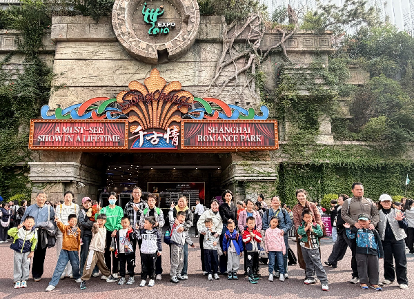 清晨的阳光刚铺满校园,幼儿园里就热闹起来啦!大朋友牵着小朋友的手,脸上满是按捺不住的开心,一起坐上了前往上海千古情的大巴。车厢里满是欢声笑语,大家都对这次旅程充满期待。