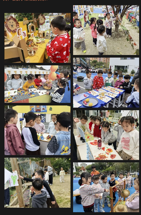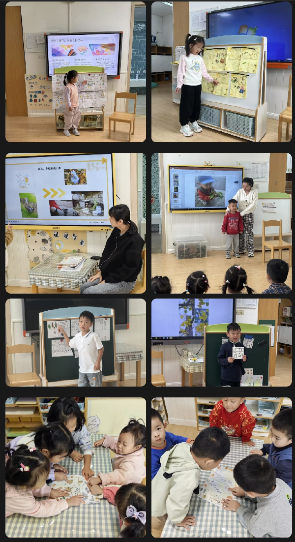 在这个多彩的秋天里,各班的小朋友们都把自己在秋天里发现的好玩事儿和小朋友们一起交流,孩子们在彼此的展示中,看到了不一样的秋天,收获了双倍的快乐!