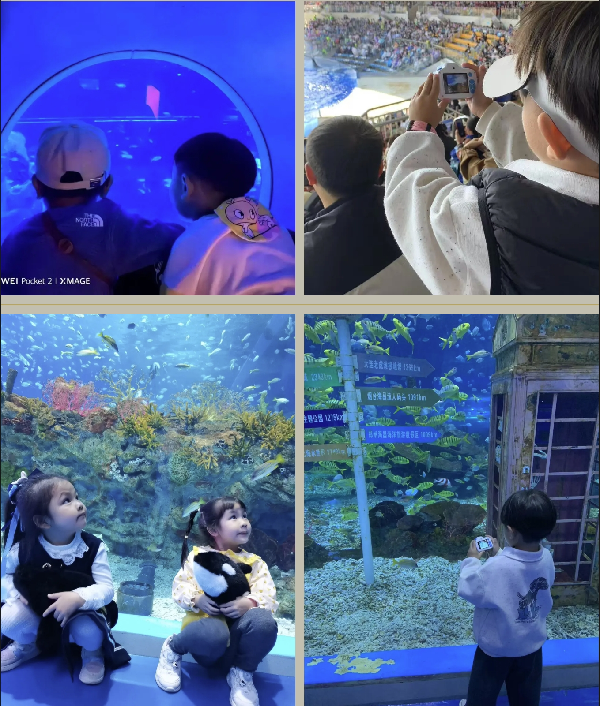 中班的小玩童们兴致勃勃地来到海昌海洋公园,透过巨大的玻璃幕墙,观察鲸鲨、企鹅、海豚等海洋生物的生活场景;在海兽探秘馆,他们仔细分辨海狮和海豹的区别,在梦幻的水母馆中,孩子们被五彩斑斓的水母深深吸引,不断发出惊叹的声音。