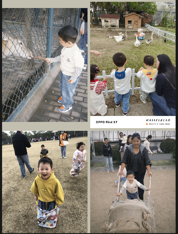在秋日暖阳下,小玩童们和爸爸妈妈拍照留念,记录下快乐时光,欢声笑语回荡在动物王国中。