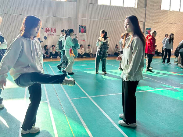 两位老师配合无间,时而左右开弓,时而前后交替,在两人之间来回穿梭。有的组合节奏舒缓、稳扎稳打,有的组合动作敏捷、花样百出。每一次灵动的跳跃,都展现着老师们的活力与风采。