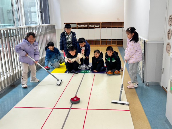 冬运会的热情来到了澜湾,孩子们手持迷你冰壶,在固定区域内瞄准、投掷,孩子直呼“每人三次机会不过瘾”。随着对力道的逐渐掌握,孩子们开始挑战同伴PK赛,游戏又再一次进入白热化阶段。