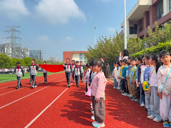 活动伊始,孩子们在老师的带领下,整齐列队观摩了御澜湾小学的升旗仪式。看着哥哥姐姐们挺拔的站姿、标准的队礼,孩子们纷纷效仿,挺直小小的板,目光专注地注视着五星红旗冉冉升起。尽管动作带着稚嫩,但眼神中满是认真与崇敬,在庄重的仪式氛围中,孩子们不仅感受到了小学的校园文化,更悄然萌发了对 “小学生” 这一身份的向往与期待。
