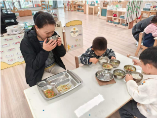 会后,家长代表走进班级陪餐,亲身体验幼儿用餐流程与餐食品质,对菜品搭配、口味口感、卫生安全给予认可与肯定。