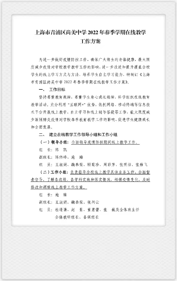 疫情爆发以后,在党支部书记陈伟峰、副校长陈凯的组织下,学校立即建立在线教学工作领导小组和工作小组,制定方案,健全机制,保障到位,排摸及时,培训跟进。及时召开教育、教学等专题研讨会,确保线上教学顺利开展。