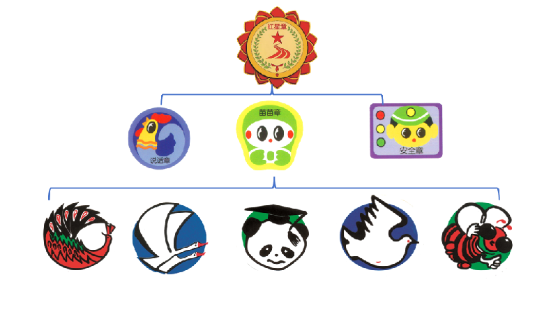 “‘苗苗章’总共有六个章,分别是代表纪律的大雁章、代表学习的熊猫章、代表自理的小蜜蜂章、代表礼仪的小孔雀章、代表卫生的小白鸽章和代表组织的小海豚章。”台下一年级的同学听得认真,右手紧握争章牌,不时发出“我能做到”的小声回应。