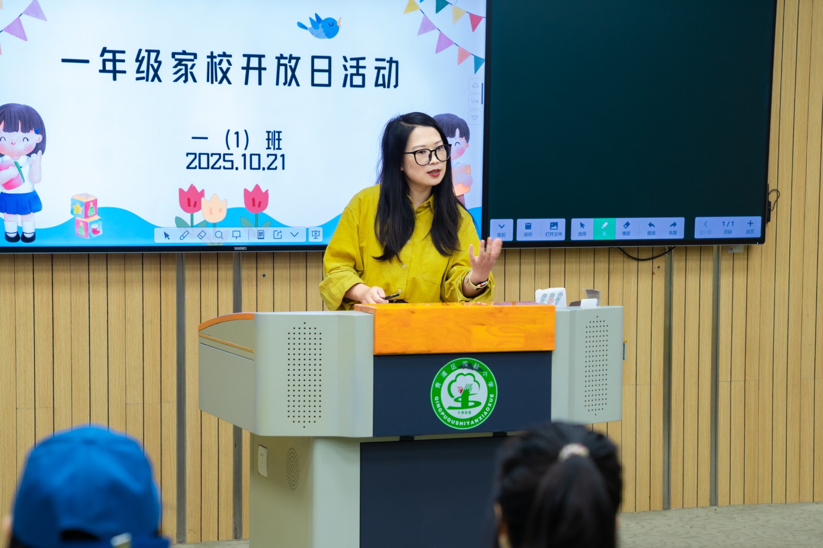 2025年10月21日下午,御澜湾学校举办了一年级开放日活动,主题为“御宝初长成 家校同频行”。活动邀请了全体一年级家长参加,旨在搭建家校沟通的桥梁,让家长直观了解孩子的校园生活和课堂学习情况,有效缓解对孩子适应小学生活的担忧,进一步增进与学校和教师的互信。