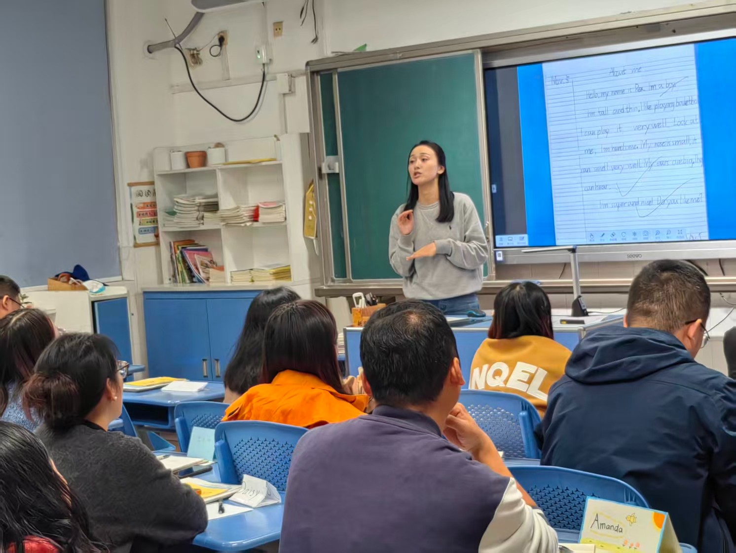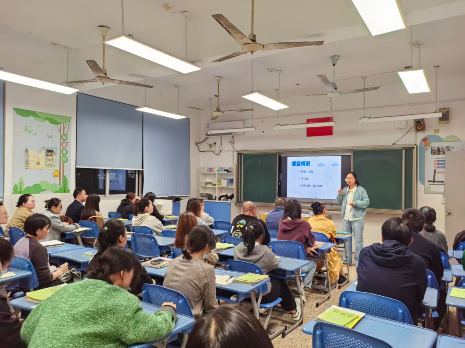 随后,各个班级展开了热烈的互动与交流环节。走进各班教室,暖意扑面而来:电子屏上循环播放着孩子们课间游戏、课堂专注的纯真笑颜;墙壁上错落有致地陈列着书画、手工作品等成长印记。家长们纷纷驻足观赏,不时与身旁同伴轻声交流着孩子的点滴变化,温馨融洽的氛围在教室里悄然蔓延。语文、数学、英语学科的老师们,结合半学期来的细致观察,向家长们全面反馈了孩子的学习状态:从课堂表现到作业质量,从优势亮点到提升空间,每一处细节都饱含着老师的用心。当听到孩子获得的肯定、看到字迹工整的优秀作业,或是了解到孩子在知识积累、习惯养成上的进步时,家长们的脸上无不绽放出欣慰的笑容,更深深体会到老师们日复一日的悉心耕耘与对孩子真挚无私的关爱,这份双向的理解与感动萦绕在每个人心头。此外,各班班主任还精心筹备了针对性极强的家长学校微讲座,围绕 “学习习惯的科学培养”“亲子沟通的秘钥”“高质量陪伴” 等话题,分享实用经验与专业见解。丰富详实、贴近需求的内容,赢得了家长们一次次热烈的掌声,也让家校携手、同心育人的美好愿景在交流中愈发清晰。