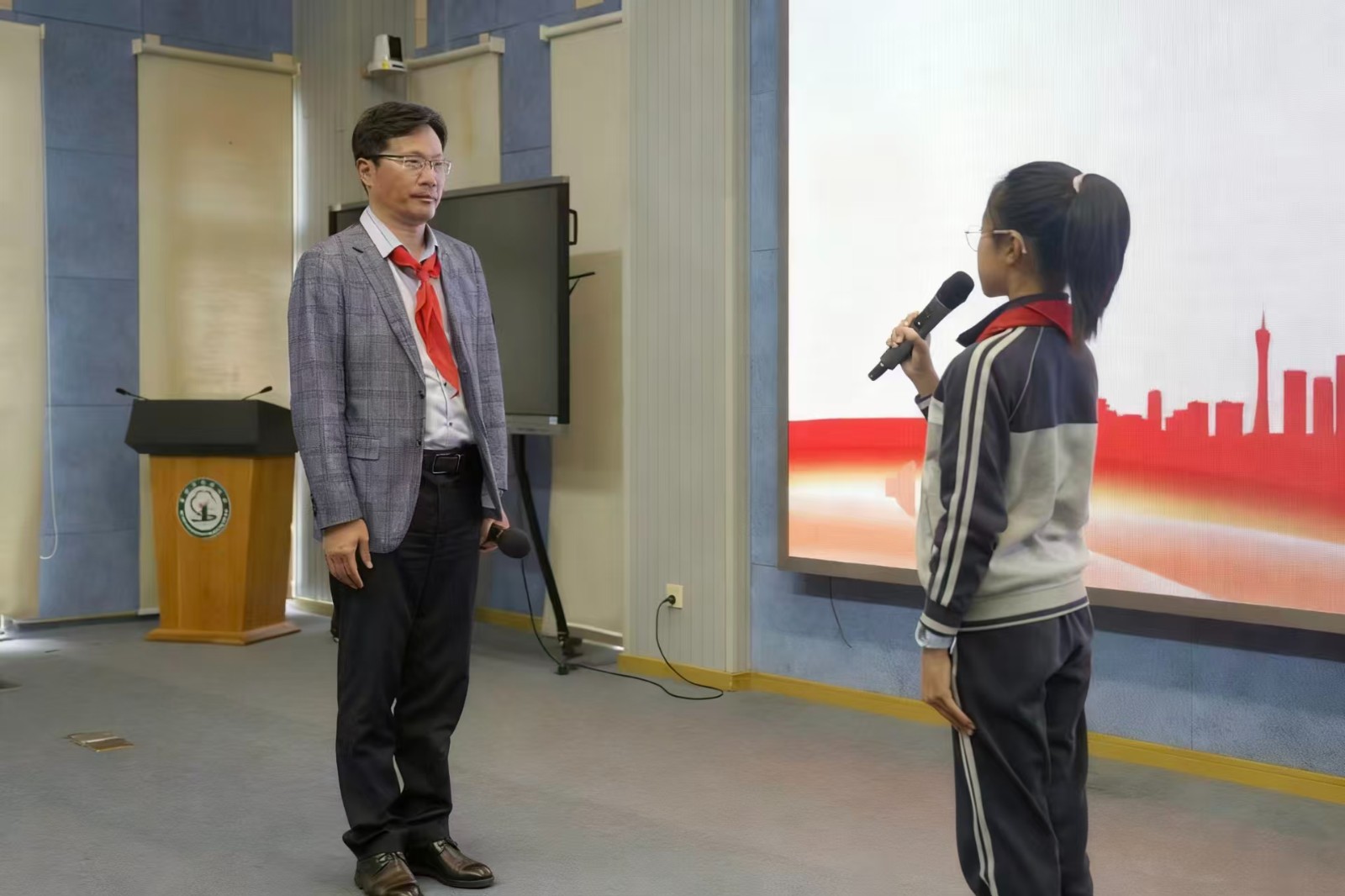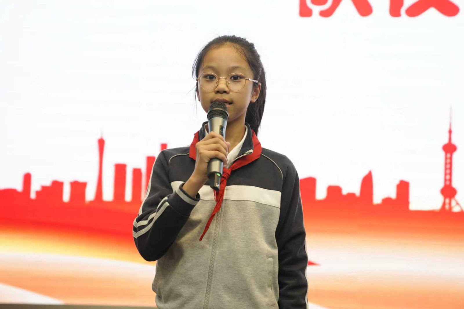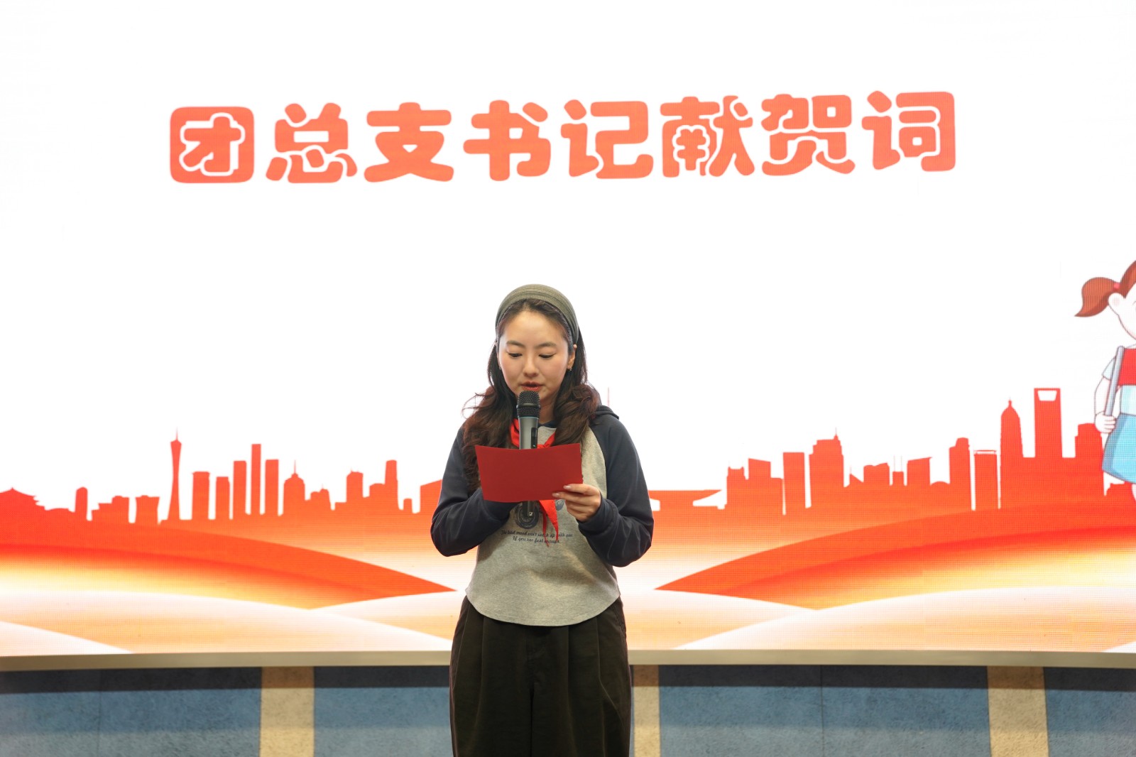 少先队员代表张轩睿登台献贺词,用真挚的语言表达了对少先队组织的热爱与对未来的憧憬;团总支书记郑毓灵老师发表贺词,寄语全体少先队员牢记使命、奋勇争先,在成长路上勇担时代责任。