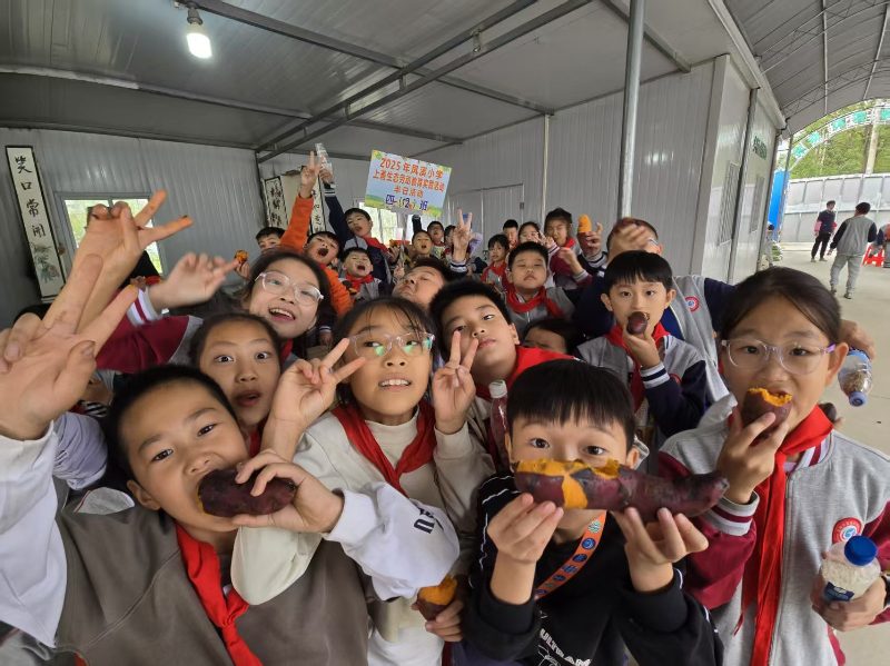 劳动体验结束,同学们品尝起了自己的劳动成果——烤红薯,一个个脸上洋溢着欢快满足的笑容。