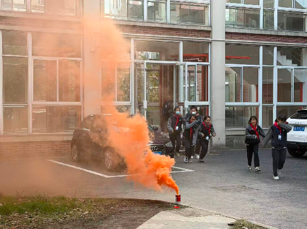 上午9时30分,随着一阵急促的消防警报声划破校园的宁静,消防应急疏散演练正式拉开帷幕。霎时间,各教学楼楼道内“浓烟”弥漫。全体师生迅速进入应急状态,各班学生在班主任和楼层疏导老师的指挥下,严格按照应急预案,捂住口鼻,弯腰低姿,沿着预定疏散路线,快速、有序地向学校操场安全地带撤离。整个过程紧张而不慌乱,密集而不拥挤,全校师生全部安全疏散完毕,达到了预期的演练效果。