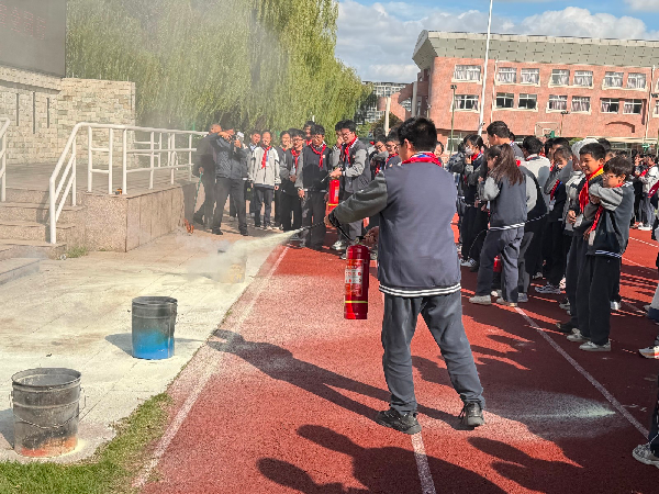 活动的最后环节,我校特邀相关部门为师生带来了一场精彩而实用的消防技能演示。现场讲解了灭火器的正确使用方法——“提、拔、握、压”,并邀请部分师生上台进行油盆灭火实操。令在场师生赞叹不已,将整个活动的气氛推向了高潮。