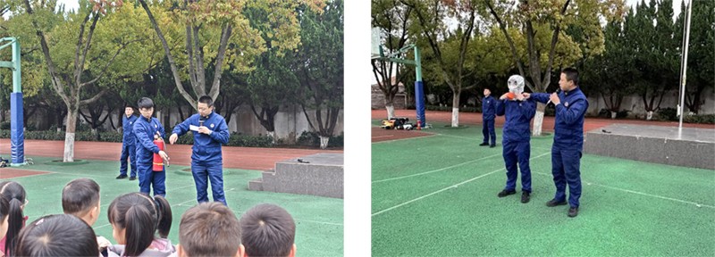 首先,练塘消防站高站长用通俗易懂的语言,讲解校园火灾预防、火场逃生、报警常识、灭火器及防毒面具使用方法等消防知识,让安全理念入脑入心。