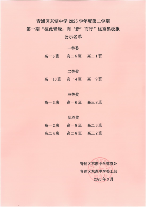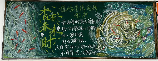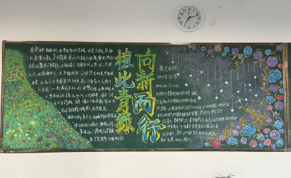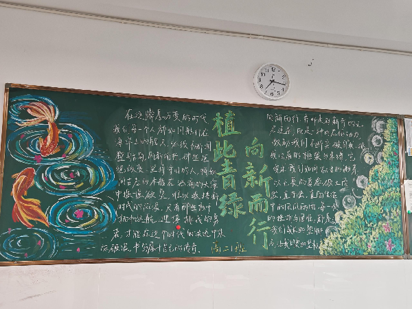 3月初,各班级以“植此青绿,向‘新’而行”为主题,一笔一划勾勒绿意,一字一句书写初心,将对自然的热爱、对环保的理解融入黑板报的方寸之间。一块块主题鲜明、版面美观、内容丰富的黑板报,不仅成为校园里一道靓丽的绿色风景线,更在全校范围内营造了“爱绿、植绿、护绿”的浓厚氛围。3月13日,学生会黑板报评选小组对各班的作品进行了评审。
