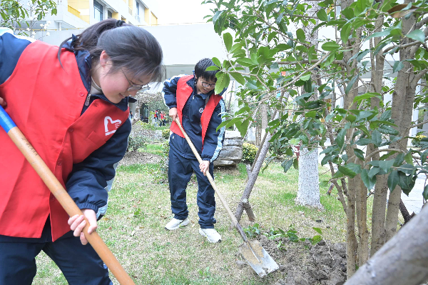 3月16日中午,由党员教师带头引领,高一年级团员代表参与了植树实践活动。后勤保障处提前做好树苗、工具准备及场地划分,党员教师们用实际行动指导学生规范开展植树操作,团员学生相互协作、分工配合,认真细致地完成了每一个步骤。