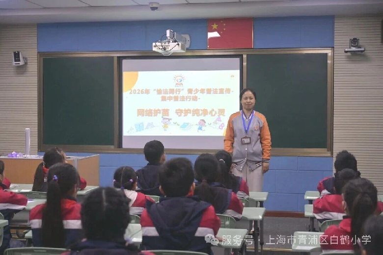 网络护苗 守护纯净心灵——青浦区白鹤小学开展“愉法同行”青少年普法宣传活动