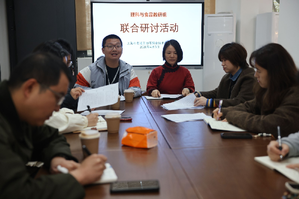2026年4月3日,我校开展以 “同研一节课 聚力共成长” 为主题的联合教研活动,为吴漪薇老师4月15日长三角区域展示课进行专题磨课。理科教研组、食品教研组及教导处相关教师共同参与。