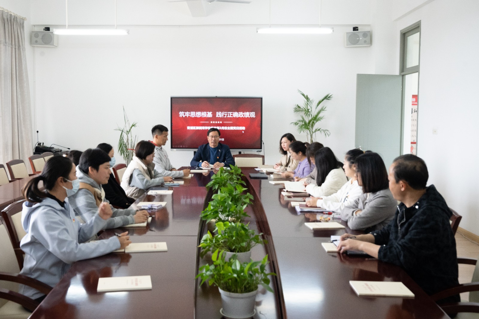 为引导全体党员教师牢固树立和践行正确政绩观,切实把思想和行动统一到教育教学工作要求上来。2026年3月31日,御澜湾学校党支部以“筑牢思想根基 践行正确政绩观”为主题,开展3月份主题党日活动。会议由党支部书记顾文荣主持,全体党员参加。
